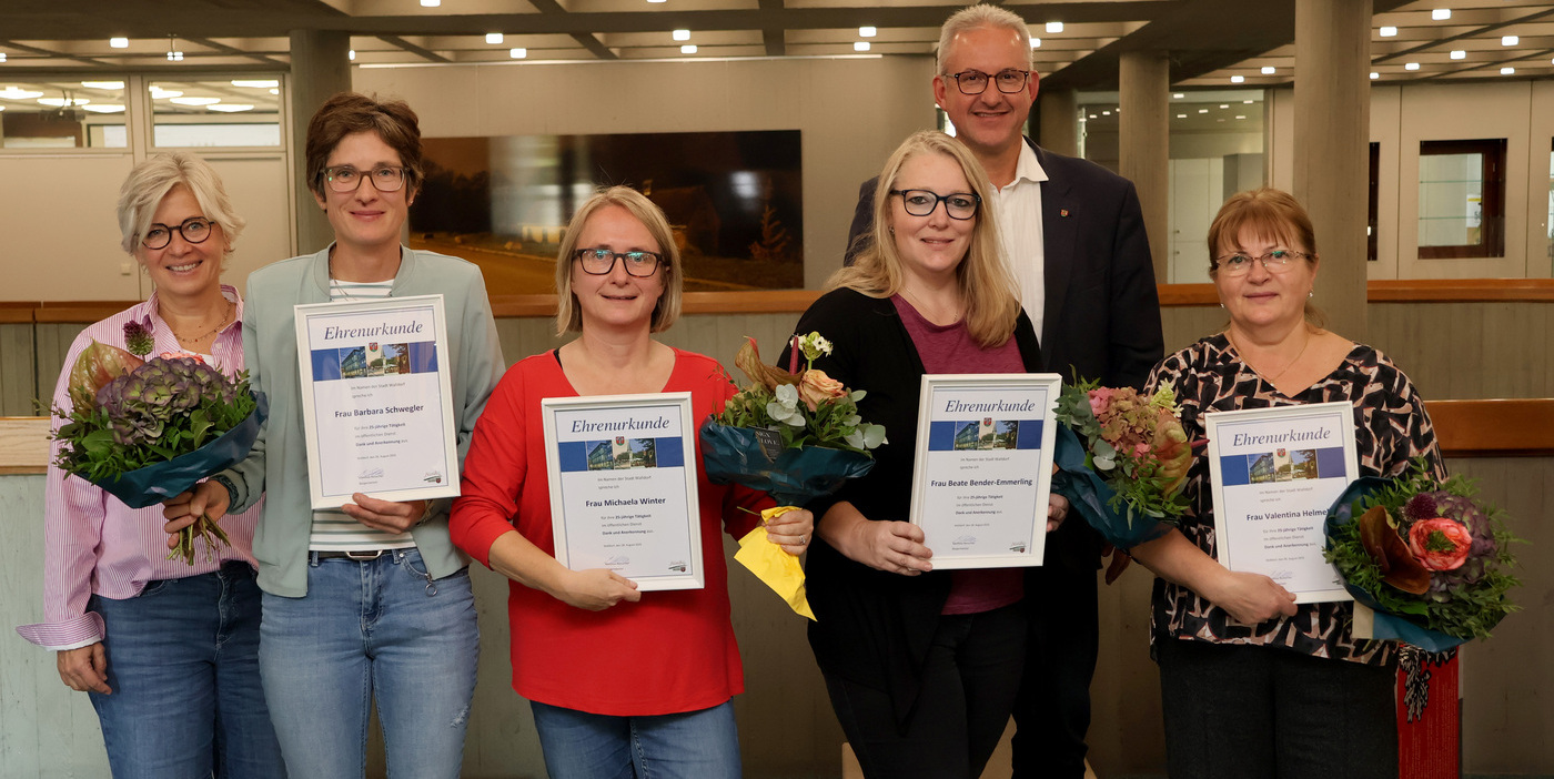 Vier Mitarbeiterinnen der Stadt feiern 25-jähriges Dienstjubiläum
