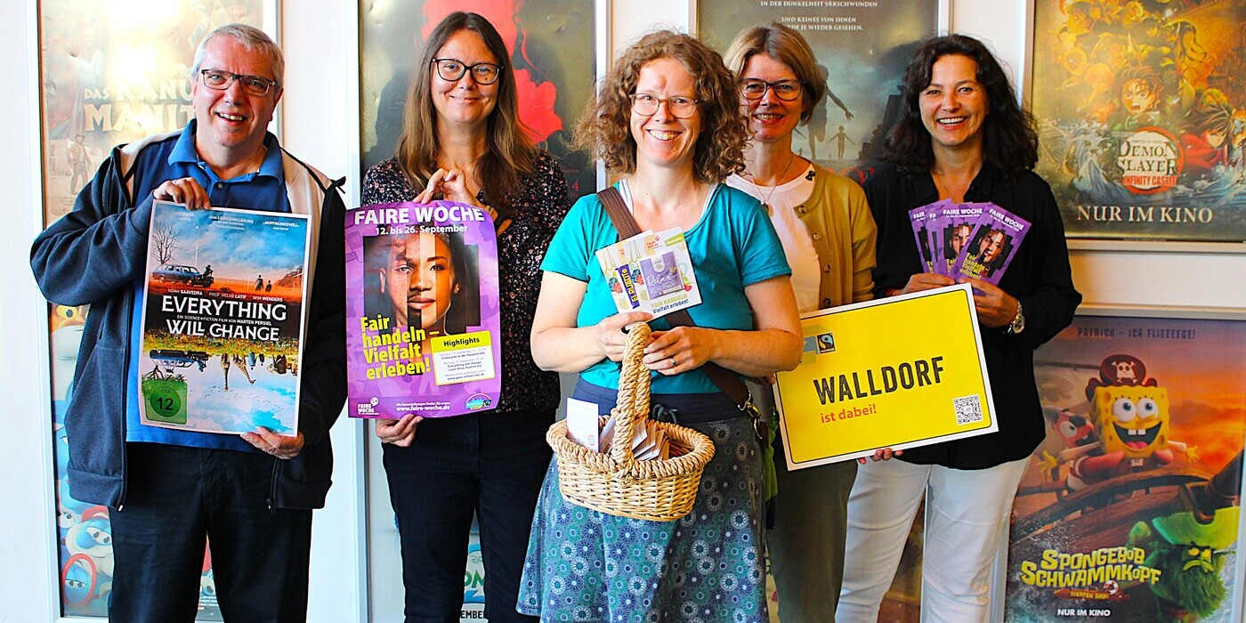 Die Mitglieder der Fairtrade-Steuerungsgruppe freuten sich über den guten Publikumszuspruch bei der Filmvorführung im Rahmen der Fairen Woche: (v.li.) Thomas Bensch, Sandra Seitz, Barbara Mühle, Susanne Nisius und Gabriele Krämer de Carrasco. Foto: Stadt Walldorf