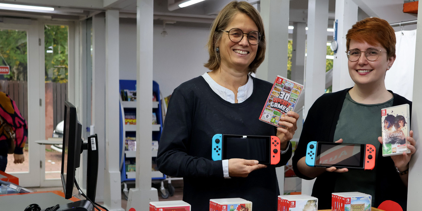 Die Switch-Konsolen können nur an Personen ab 18 Jahren ausgegeben werden, betont Barbara Grabl. Die Ausgabe der Spiele dagegen richtet sich nach der jeweiligen Altersfreigabe der USK (Unterhaltungssoftware Selbstkontrolle). „Wir haben nur Spiele im Sortiment, die maximal bis zwölf Jahre freigegeben sind“, ergänzt Franziska Kau, stellvertretende Leiterin der Stadtbücherei. Die Spiele seien aber sicher auch für Erwachsene interessant.
